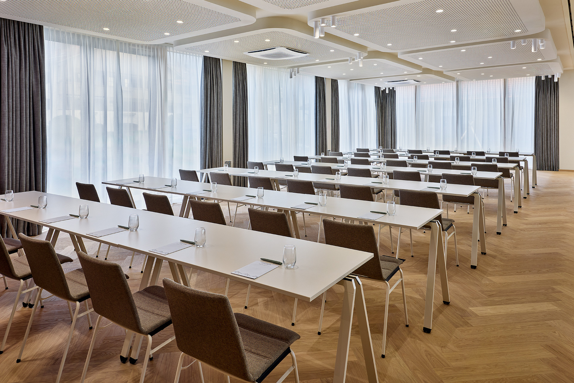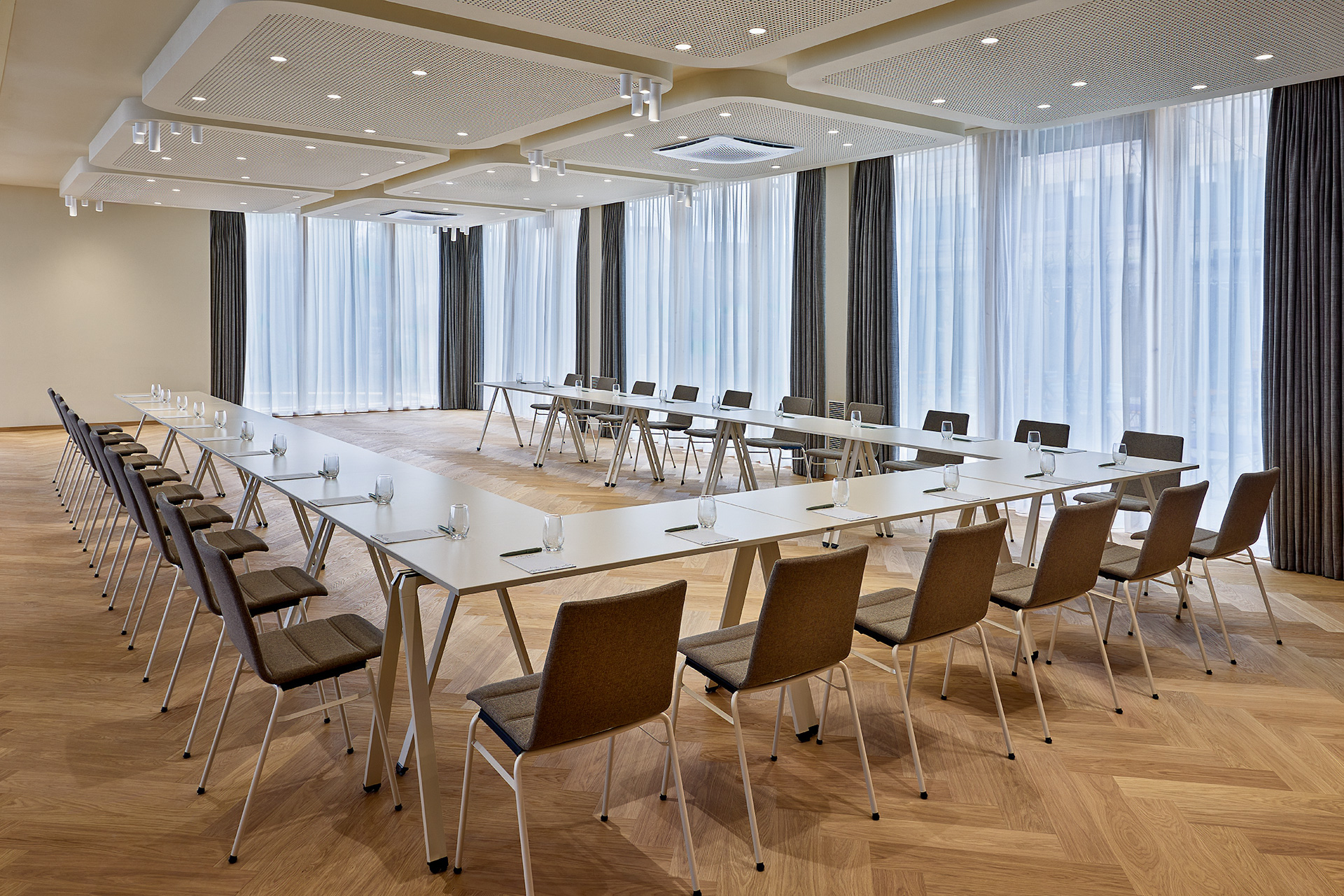 Für Tagungen, Meetings, Workshops und Firmen-Events stehen Ihnen sechs flexibel gestaltbare Räume für bis zu 175 Personen zur Verfügung. Dazu kommen die Rooftop Bar Echo als exklusive Location, ein gemütlichers Spa sowie – einzigartig in der Region – eine eigene 20 Meter hohe Kletterwand.